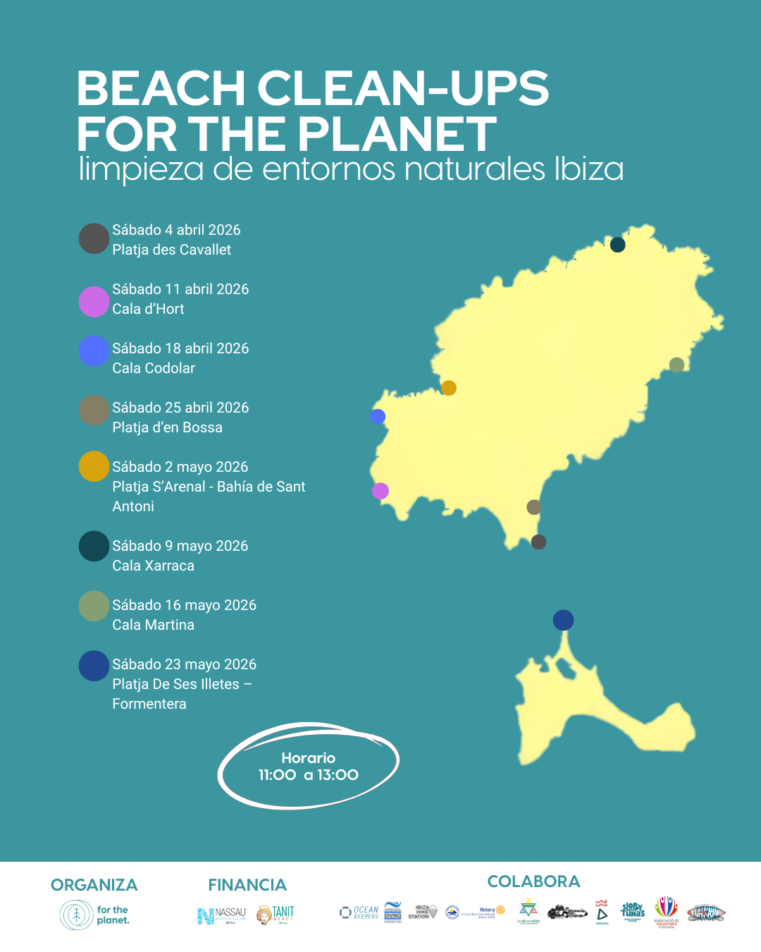 Organiza: Creatives for the Planet Financia: Nassau Group (Nassau Beach Club y Tanit Beach Club) Colaboran: Ocean Keepers, Voluntaris d’Eivissa, Akarai Club, Esencia Viva, La Bella Verde, Hike Ibiza, Fun Kayaks.
