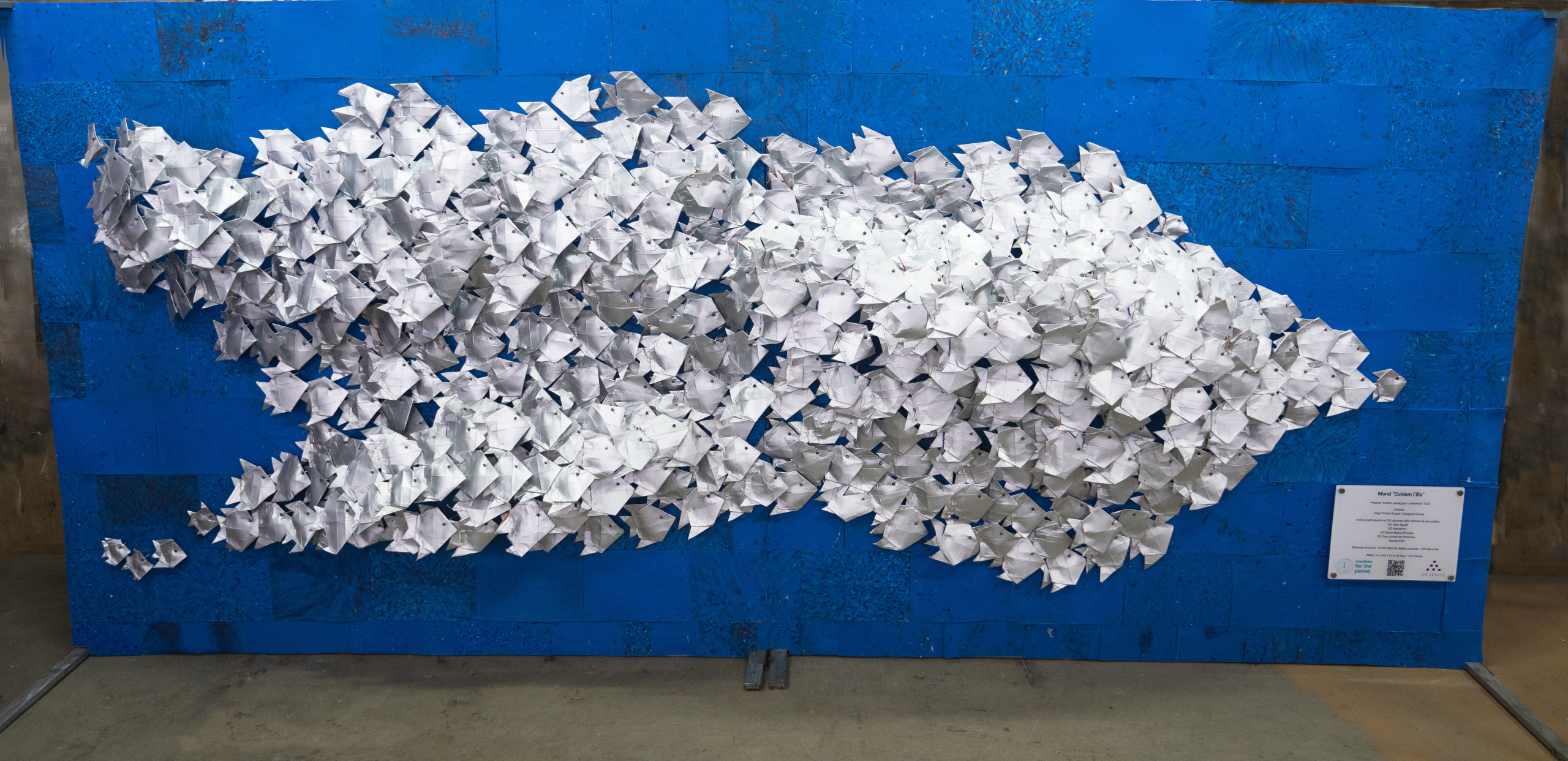 Mediante el uso de la bicicleta trituradora de Plustic Lab, se han reciclado tapones de plástico para convertirlos de nuevo en materia prima y por otro lado se han transformado tetrabricks en peces. Estos elementos fueron integrados posteriormente por los artistas Jorge Pineda Bruges y Ezequiel Herrera en un mural monumental de 9 m², creando un banco de peces con 490 tetrabricks y un fondo de mar azul creado con 49 kg de tapones: una obra de arte para concienciar sobre la importancia de cuidar nuestros mares y toda su riqueza natural.
